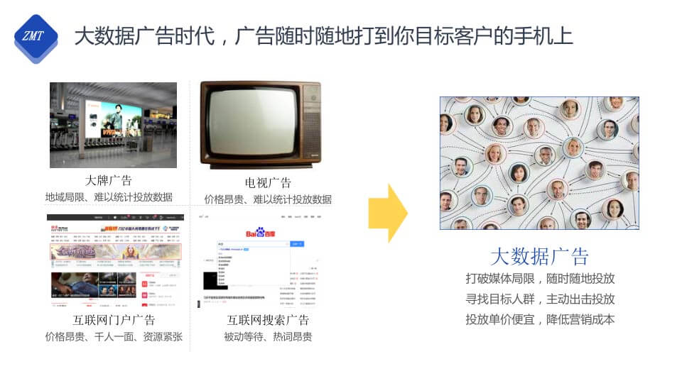 基于9亿 + 线下场景大数据的一站式展示类广告营销服务及工业化投放平台,洞察用户真实需求,打通线下+线上数据,分析广告受众到店数据,向精准人群高效展示广告,打造完整营销闭环。
